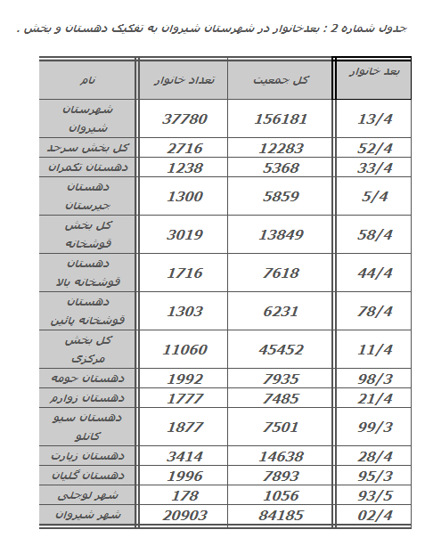 دهستان گلیان کمترین بعد خانوار را در شهرستان شیروان دارد.